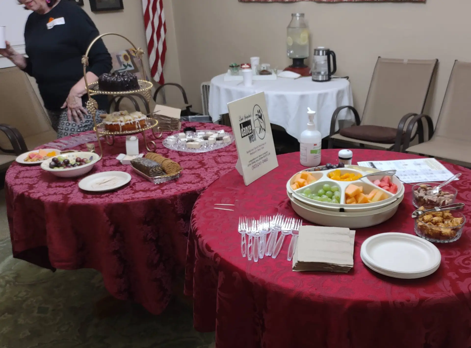 FUN-tastic party April 29th! Our celebration of the International Day of Dance was b-u-s-y all night; we stayed open until almost 11 PM with open dancing, mini-lessons, line dancing and drawings. Several of our helpers went above and beyond: Dori Yates with such great nibbles and elegant presentation; Rick Davis sharing basic steps with so many beginners new to dancing; and Patti Drewry’s decorations and Line Dancing fun for those who didn’t always have a partner. Line dance is a great way to become used to many of the movements and rhythms we use in social dancing.
